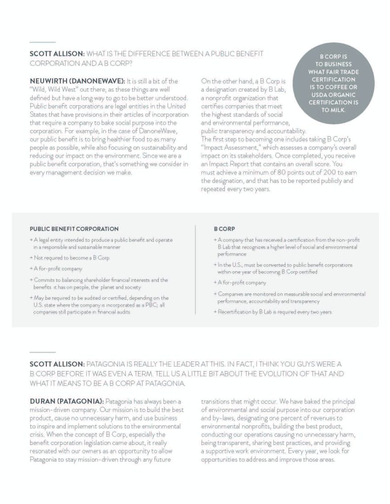 Scott Allison, Chairman and CEO of Allison+Partners, spoke to senior communications and marketing executives from DanoneWave, Seventh Generation and Patagonia about the journey from intent to certification and the critical role communications plays in explaining what these certifications mean to the public, the benefits they bring and how it will ultimately manifest within a business. As these insiders share their stories, you’ll learn how you too can make the internal case for becoming a company focused on catalyzing change in the world, while also making a profit.